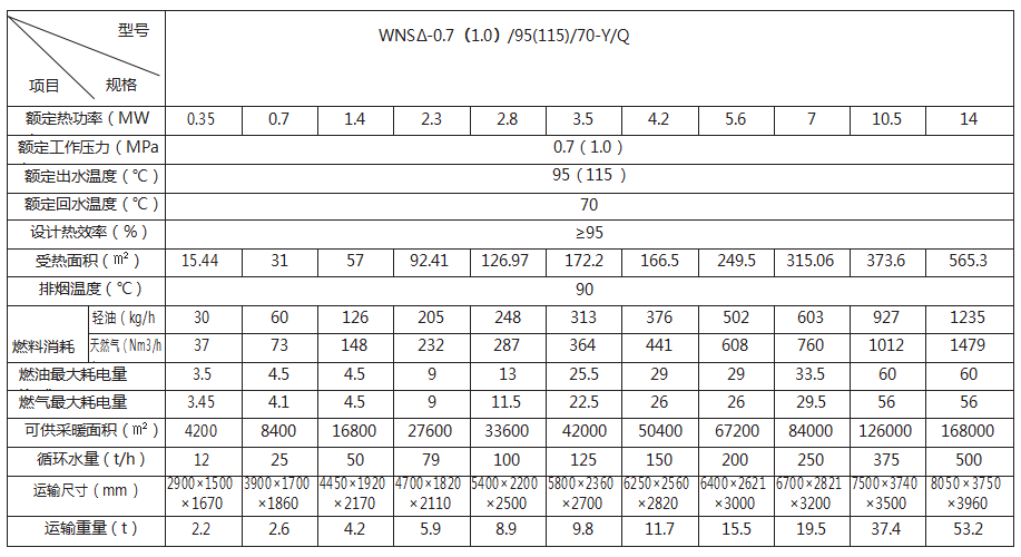 全自动燃油(气)承压热水锅炉参数